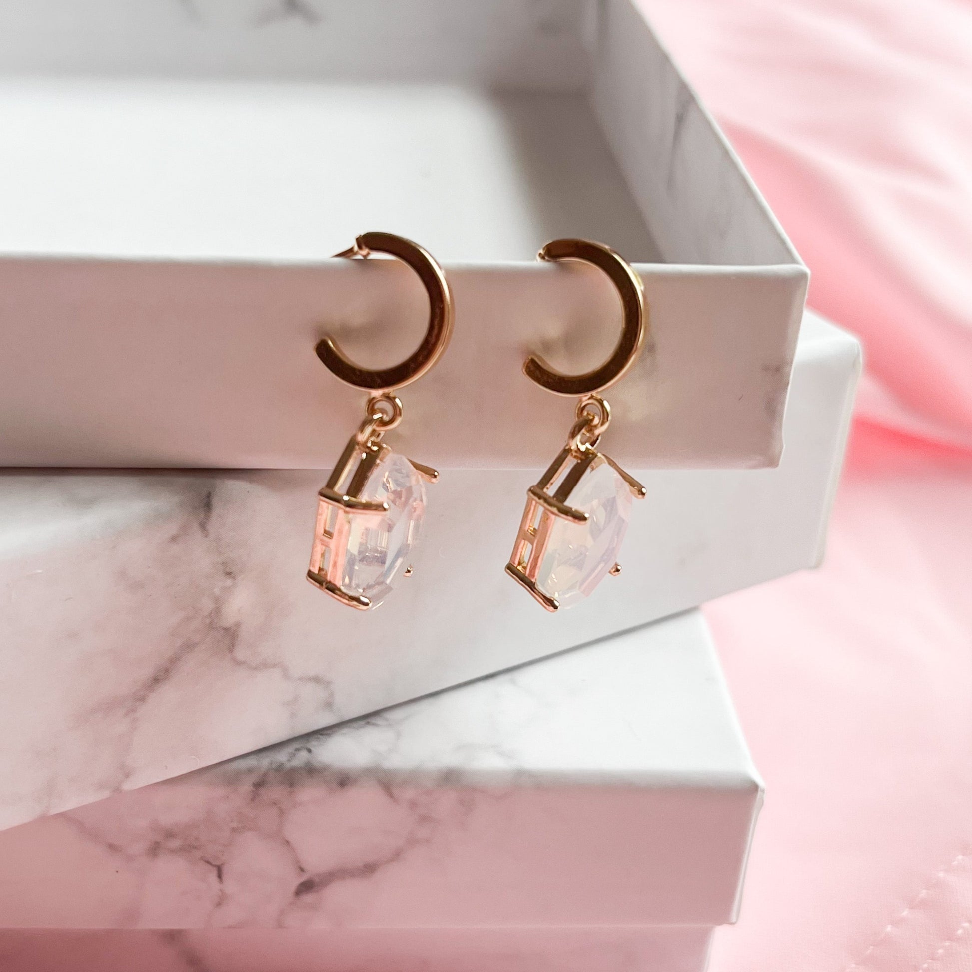 Crystal Opal Huggie Hoop Earrings
